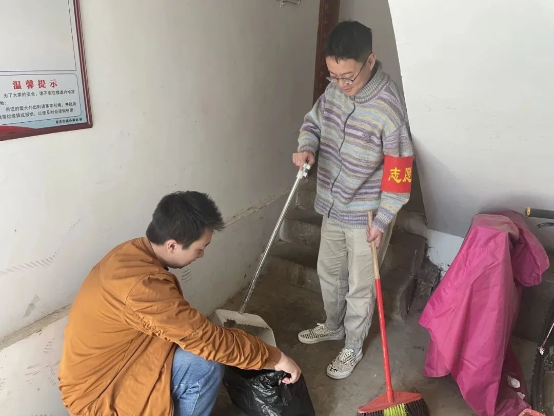 團(tuán)員青年們分工明確,手持掃帚、簸箕等工具,在退休職工生活區(qū)樓道打掃積存垃圾、清理堆放雜物,充分展現(xiàn)了新時代團(tuán)員青年的責(zé)任與擔(dān)當(dāng)。